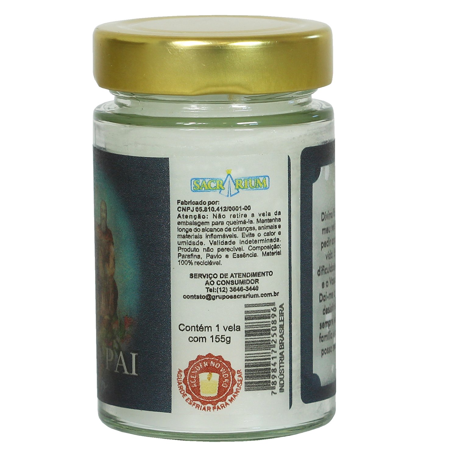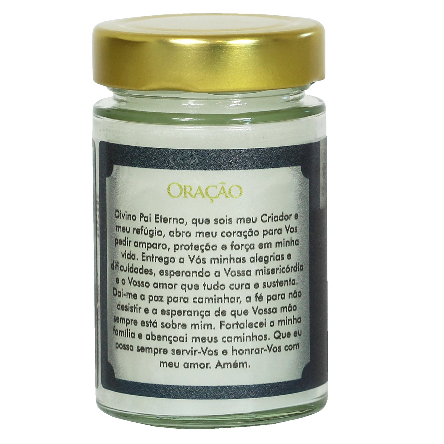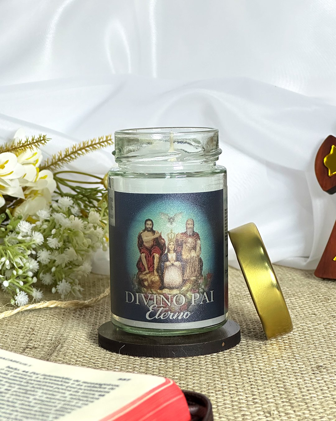 Esta vela em vidro com tampa dourada combina elegância e espiritualidade, perfeita para momentos de oração ou para presentear com carinho nesta época especial.