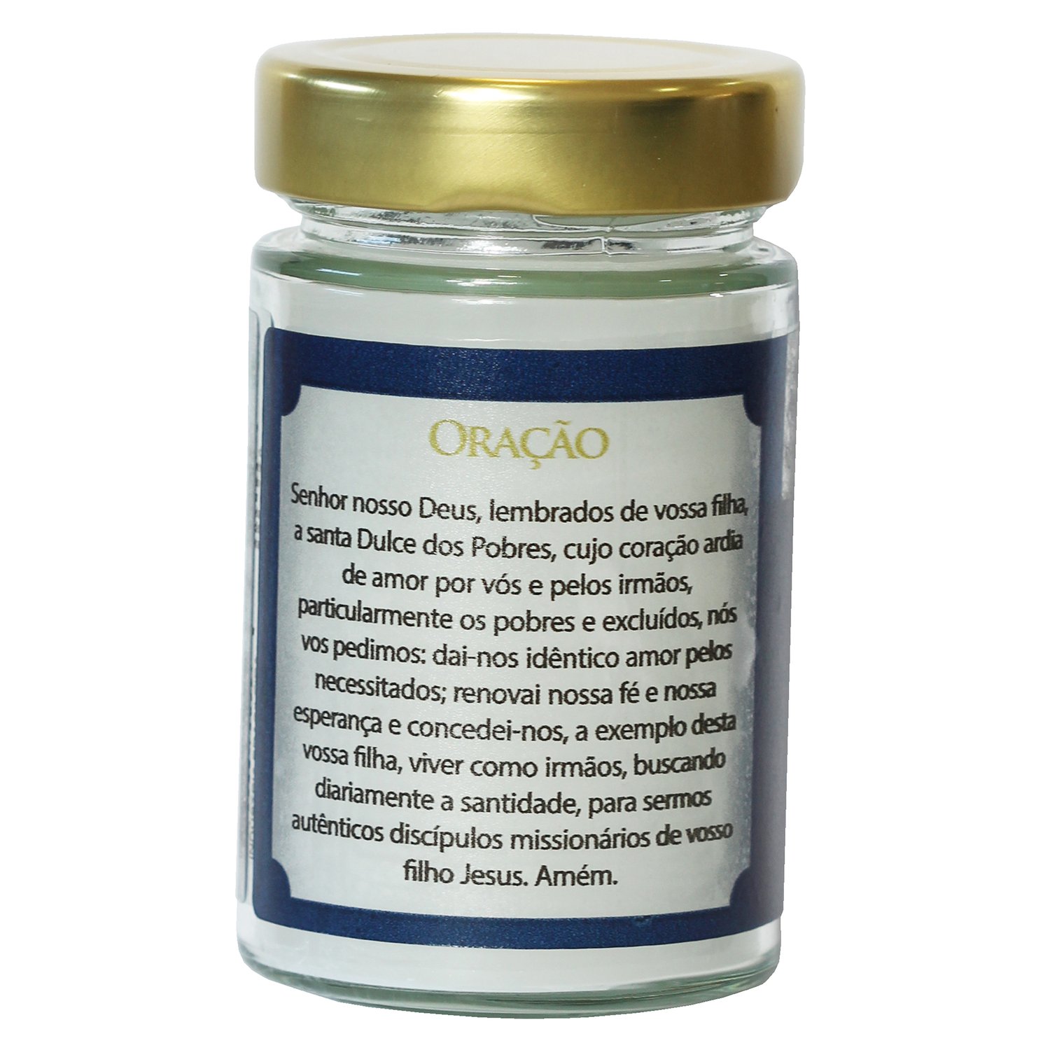 Vela Vidro com tampa dourada, recipiente medindo 10 cm de altura e 6 cm de diâmetro, vela na cor branca aromatizada de rosas. A queima da vela deve ser feita dentro do recipiente.