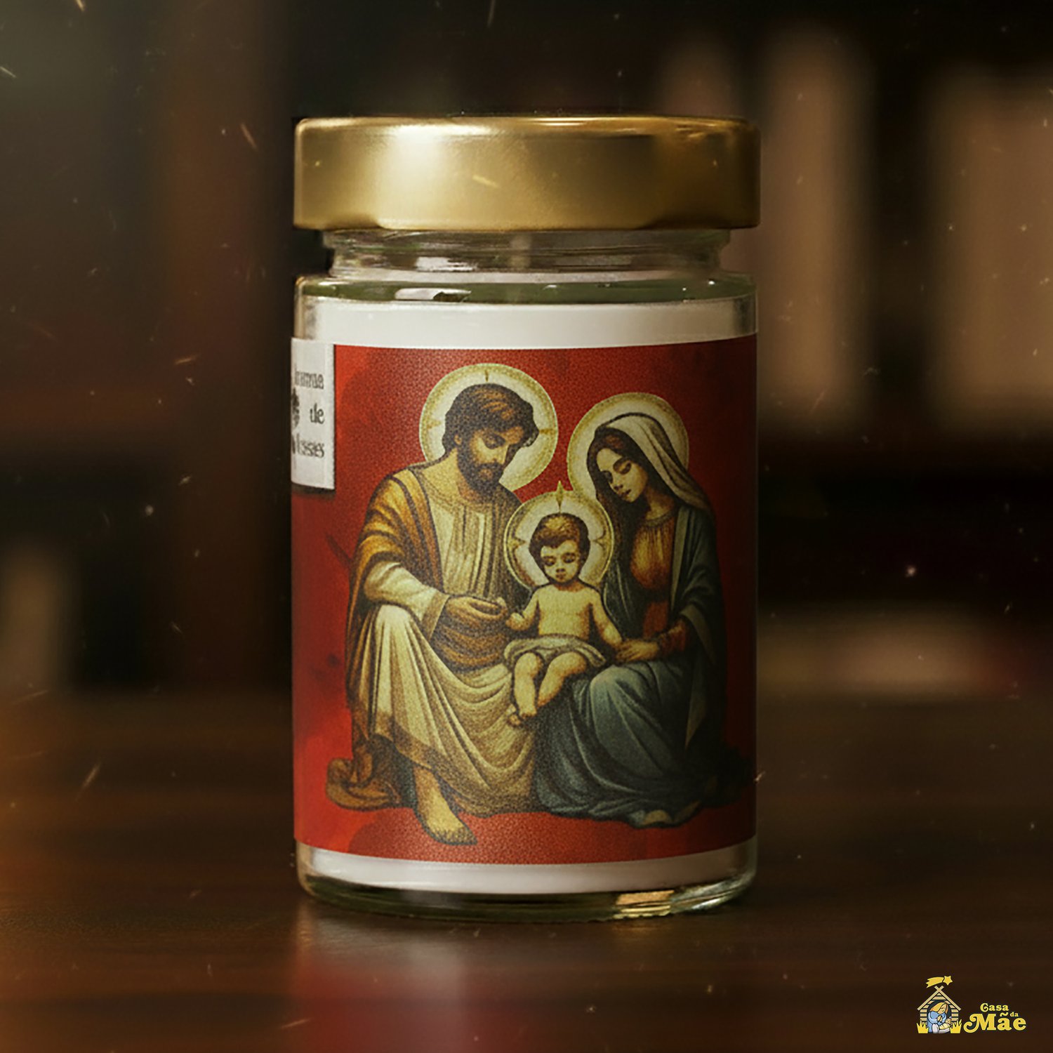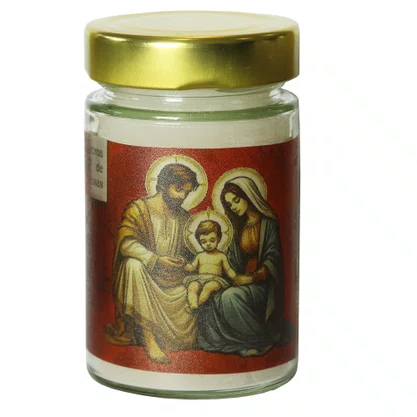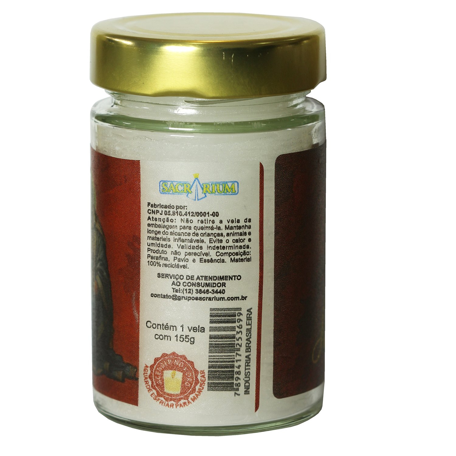 Esta vela em vidro com tampa dourada combina elegância e espiritualidade, perfeita para momentos de oração ou para presentear com carinho nesta época especial.