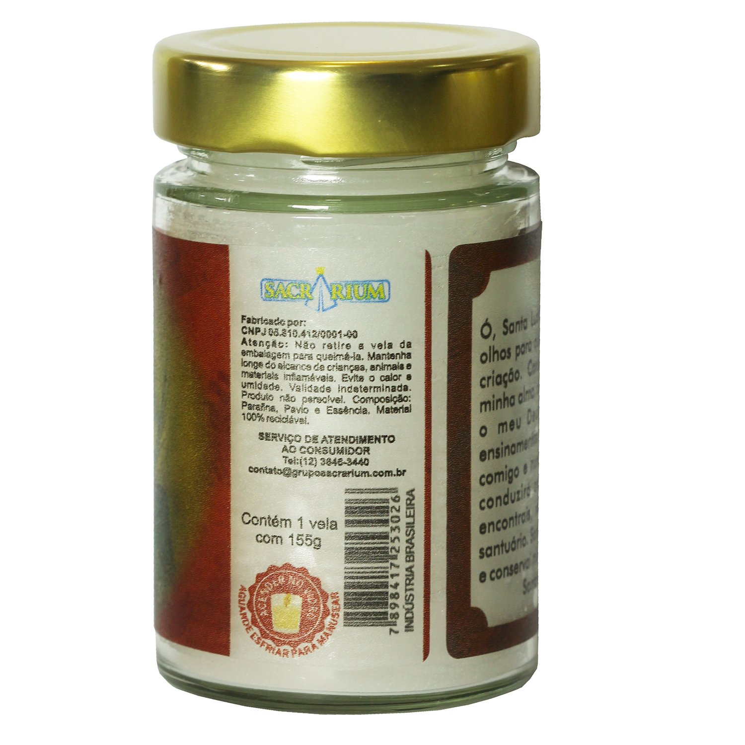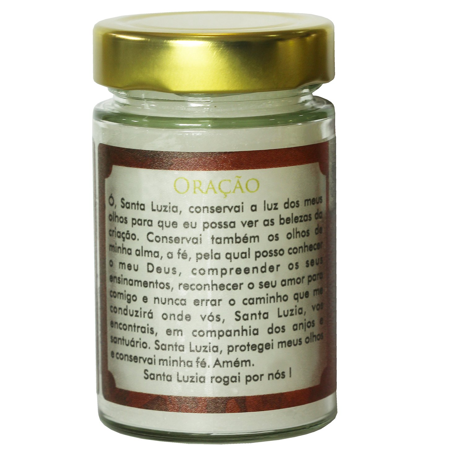 Esta vela em vidro com tampa dourada combina elegância e espiritualidade, perfeita para momentos de oração ou para presentear com carinho nesta época especial.