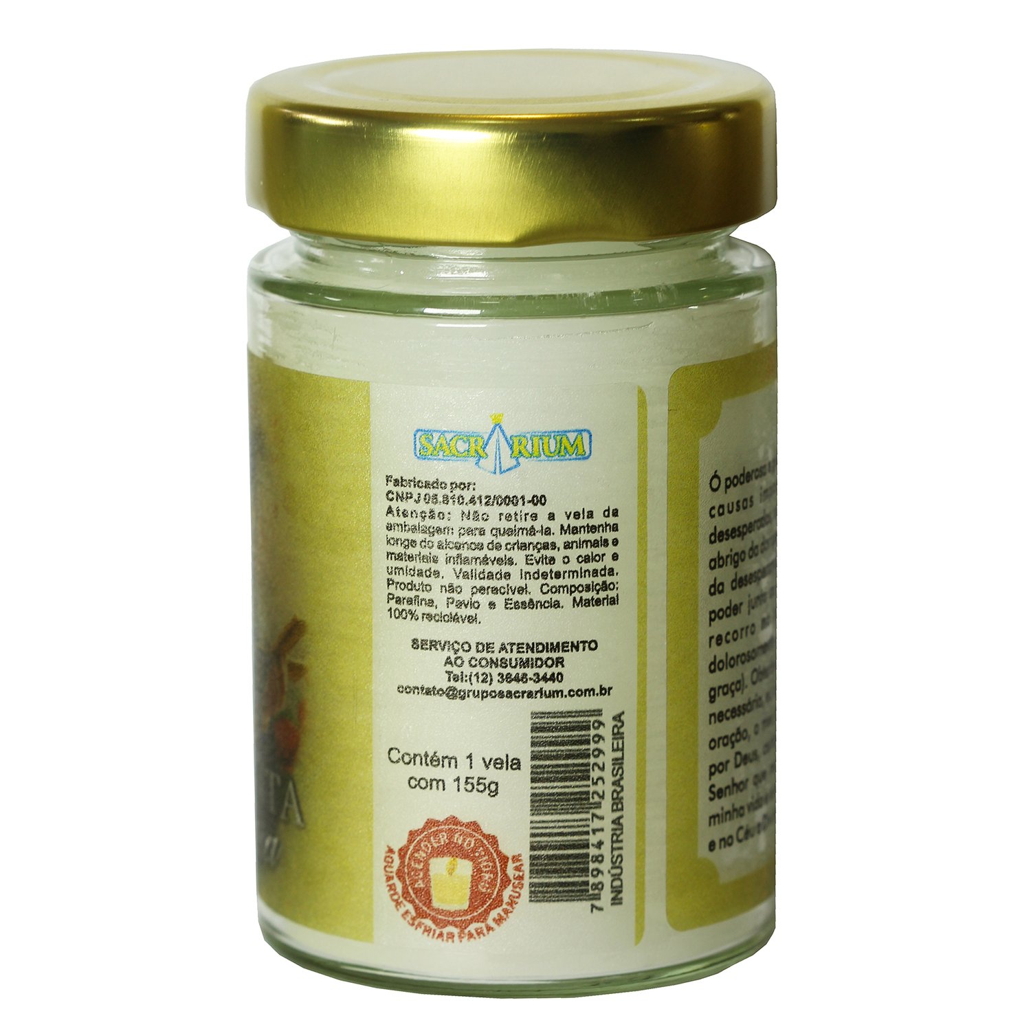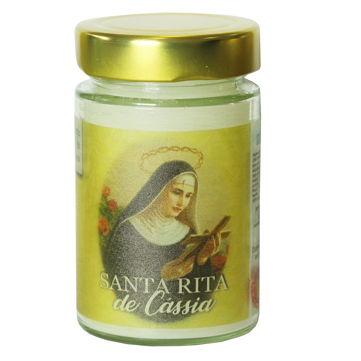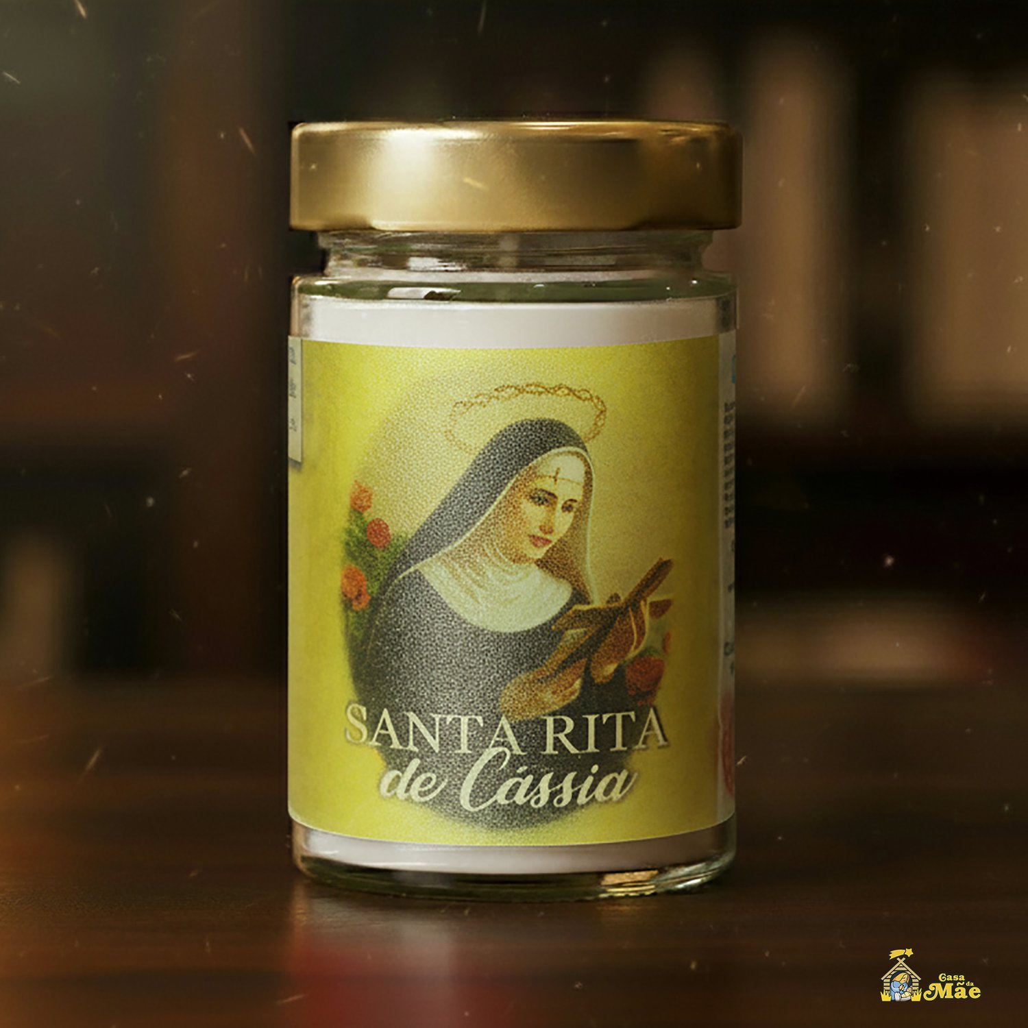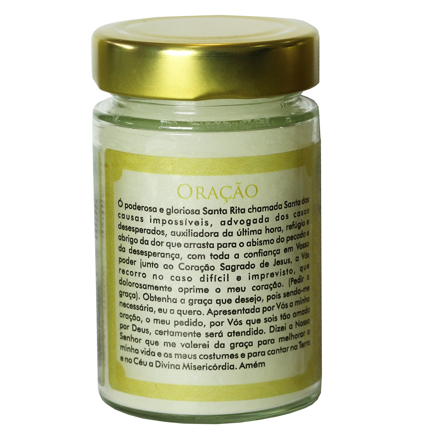 Esta vela em vidro com tampa dourada combina elegância e espiritualidade, perfeita para momentos de oração ou para presentear com carinho nesta época especial.
