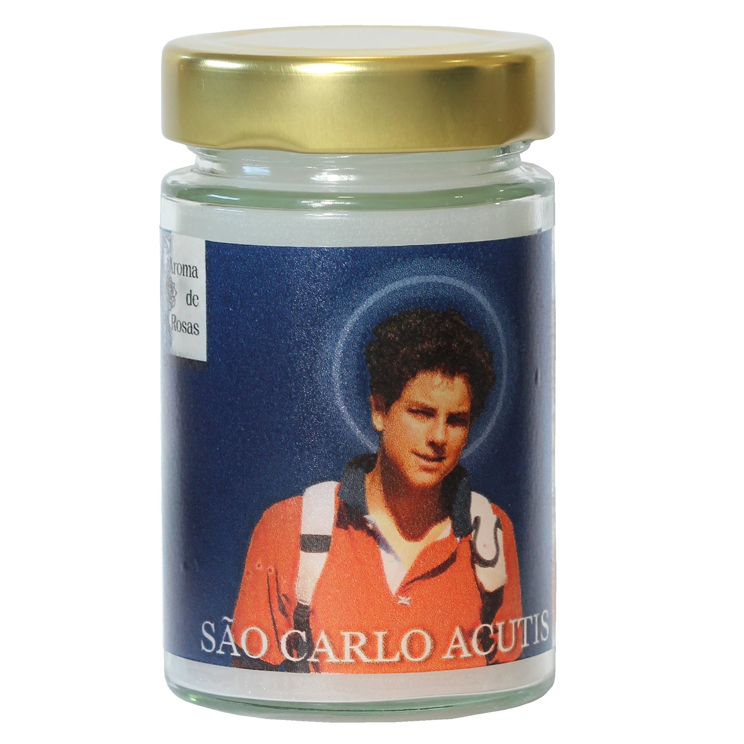 Vela Vidro com tampa dourada, recipiente medindo 10 cm de altura e 6 cm de diâmetro, vela na cor branca aromatizada de rosas. A queima da vela deve ser feita dentro do recipiente.