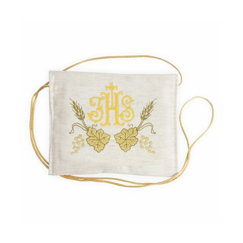 Carteira e bolsinha Viático em tecido litúrgico branca. Contendo: 1 mini bolsinha com cordão para pendurar no pescoço, 1 sanguíneo e 1 corporal.