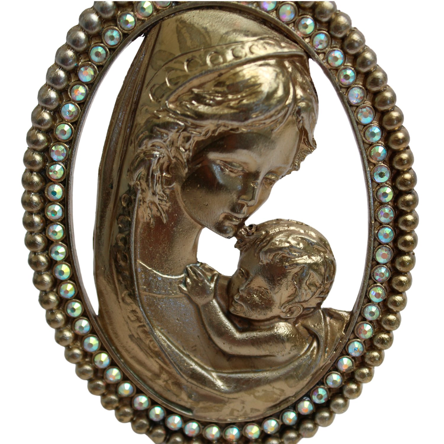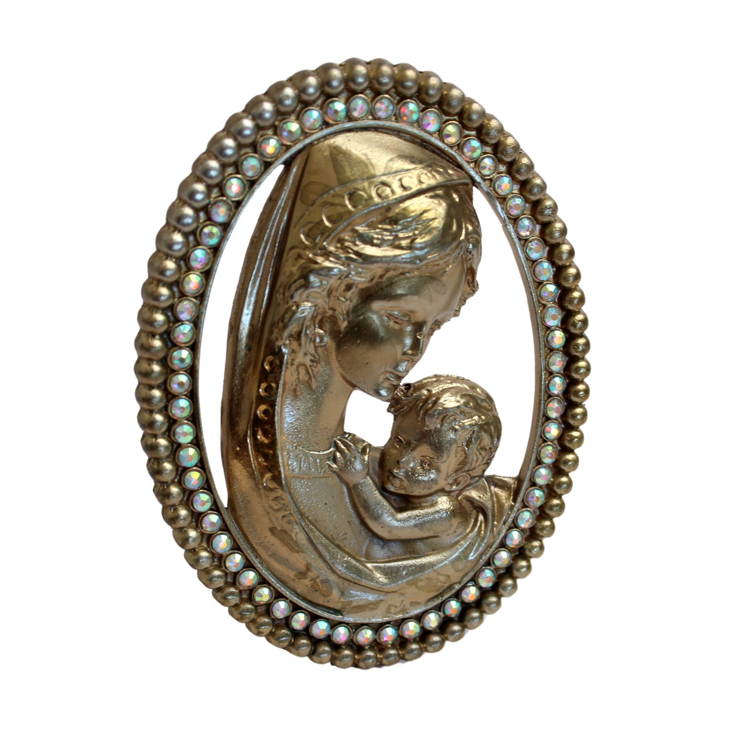 Adorno Virgem Maria Dourado Metal Mesa Strass